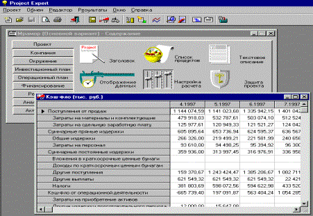 Модель компании, построенная при помощи Project Expert, имитируя ее деятельность, представляет результаты в форме стандартных финансовых документов, понятных любому финансовому аналитику или бухгалтеру. Ориентация на международные стандарты бухгалтерского учета (МСБУ) помогает здесь сразу с двух точек зрения - она облегчает работу с иностранными инвесторами и делает возможным более точный анализ финансовых результатов (так как МСБУ созданы именно для этих целей).