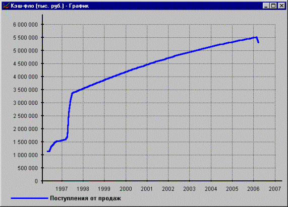 Потребность в капитале определяется на основании данных, отображаемых в Отчете о движении денежных средств (Cash-Flow). Значения сальдо счета предприятия представлены в последней строке таблицы Cash-Flow и демонстрируют прогнозируемое состояние расчетного счета предприятия, реализующего проект в различные периоды времени. Отрицательное значение сальдо расчетного счета означает, что предприятие не располагает необходимой суммой капитала.